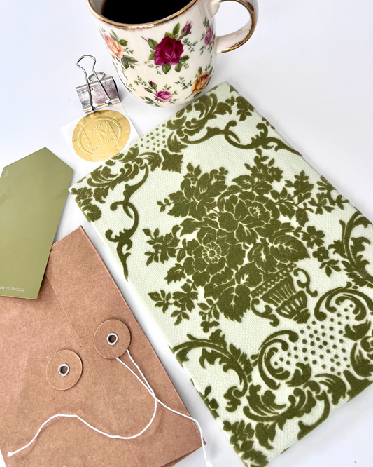 Handmade Fine Art Journal with Vintage Flocked Green Wallpaper