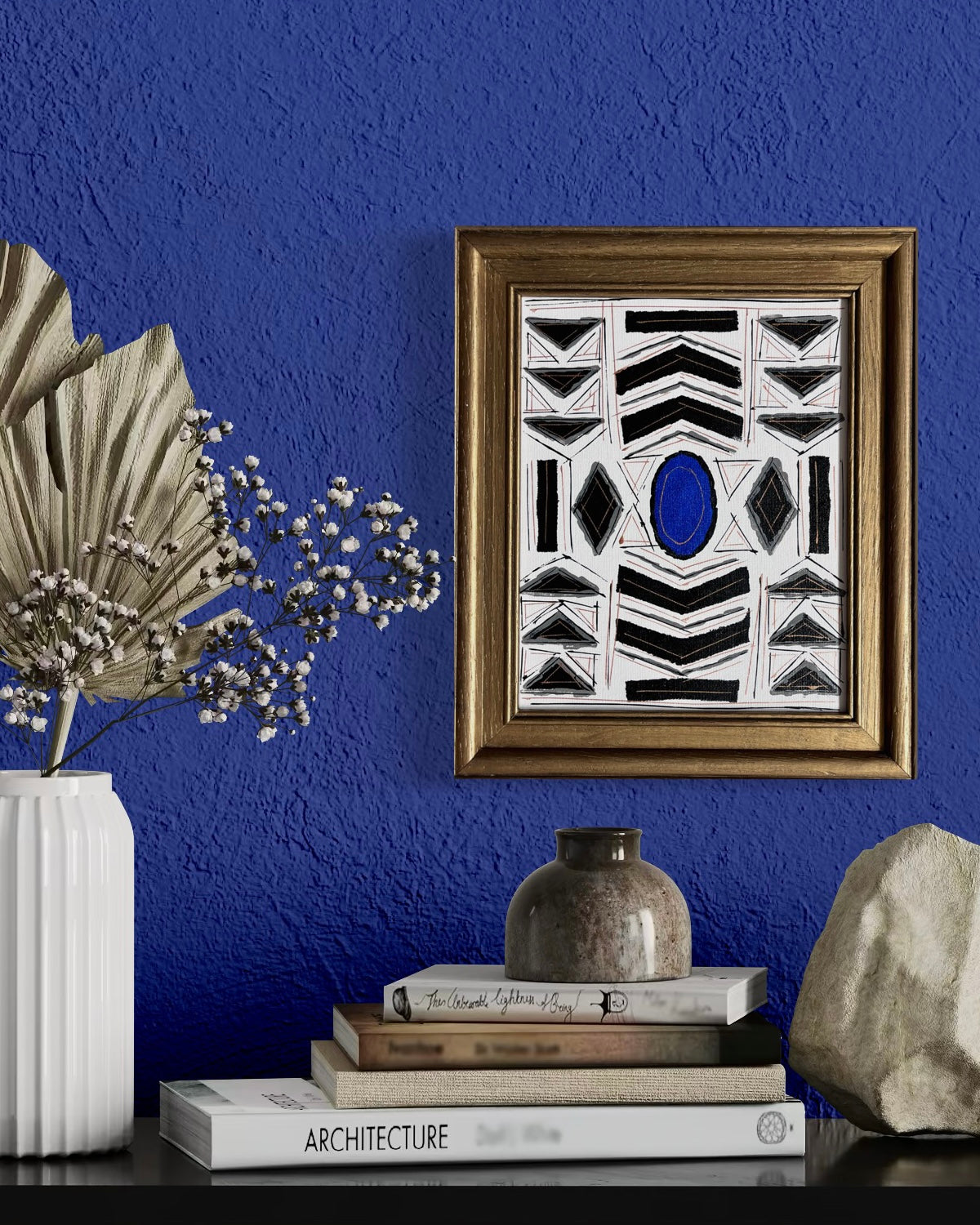 The layers of rich blue invite calm and clarity, like gazing into still waters or a night sky full of possibility.